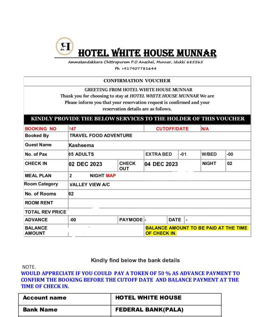 Proceed to Munnar White House Resort & Spa.