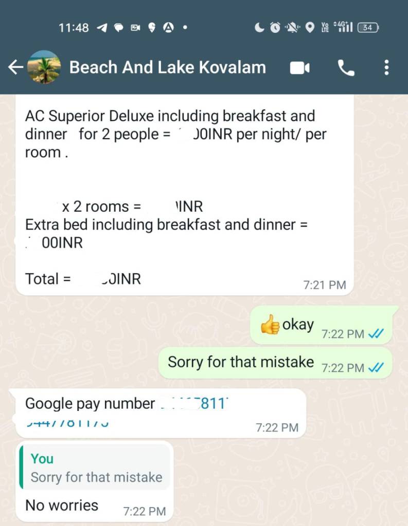 - 50% advance towards booking via UPI / Account Transfer